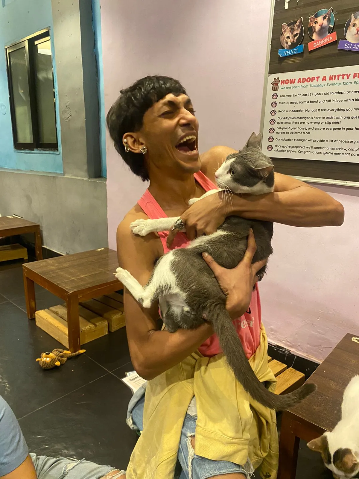 Are you ready to open your heart and home to a delightful feline companion? At Cat Café Studio, adopting a cat is a celebration of life because cats at Cat Café Studio are truly special, and you know that after you hear their history and the trials and tribulations they have been through to get to us. We only hope and pray their journey with you is filled with purrs, playful antics, cozy cuddles, and heartwarming moments.