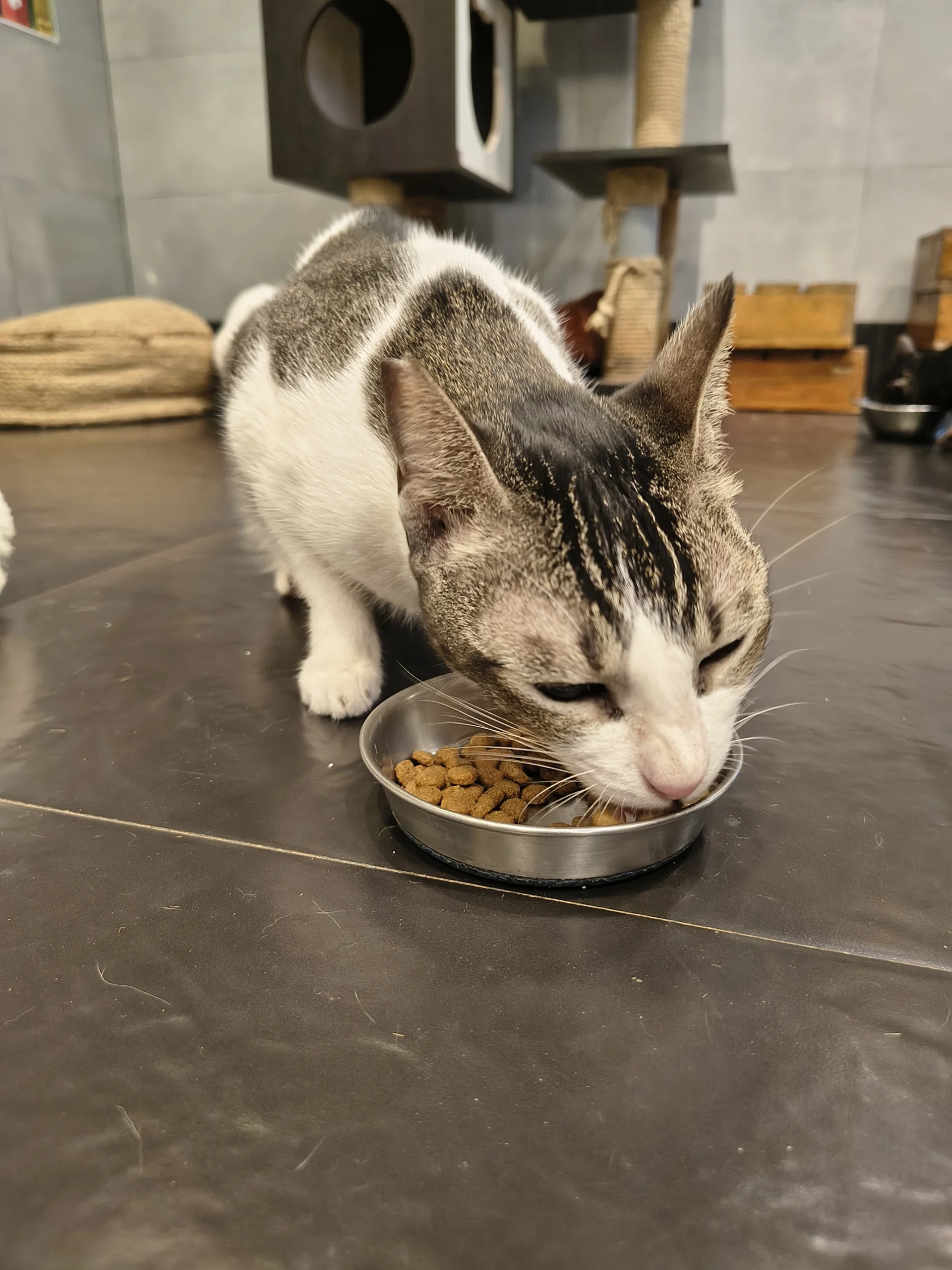 CCS cat, Sabrina enjoying dry food in the cat area | 2025