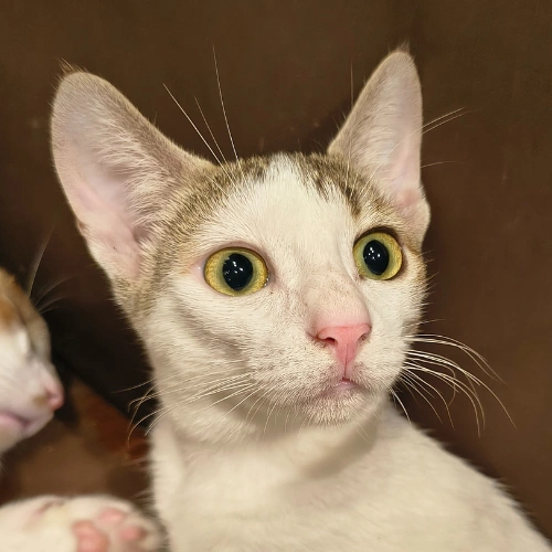 Valentina is our spicy beauty. She likes to pretend that she’s a demure and elegant girl, but her chaotic side comes out the second a string toy or creamy treat is in sight! She’s looking for a cozy spot to nap in, preferably a lap . Valentina would love to be in an energetic home with children to keep her on her paws. She is joined at the hip with her brother, Vivi and would love to have him as a furrver snuggle buddy as well.