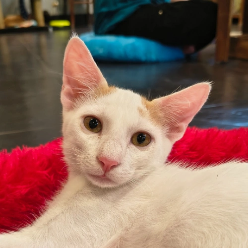 Vivi is our silly little love bug. When calm he’s happy to snuggle up, but in chaos mode who knows what trouble he’ll cause! We’re shocked how fast his mind works when it comes to mischief considering that there seems to be only a single brain cell in it most of the time! Vivi would love to be in an energetic home with children to keep him on his paws. He is joined at the hip with his sister, Valentina and would love to have her as a furrver snuggle buddy as well.